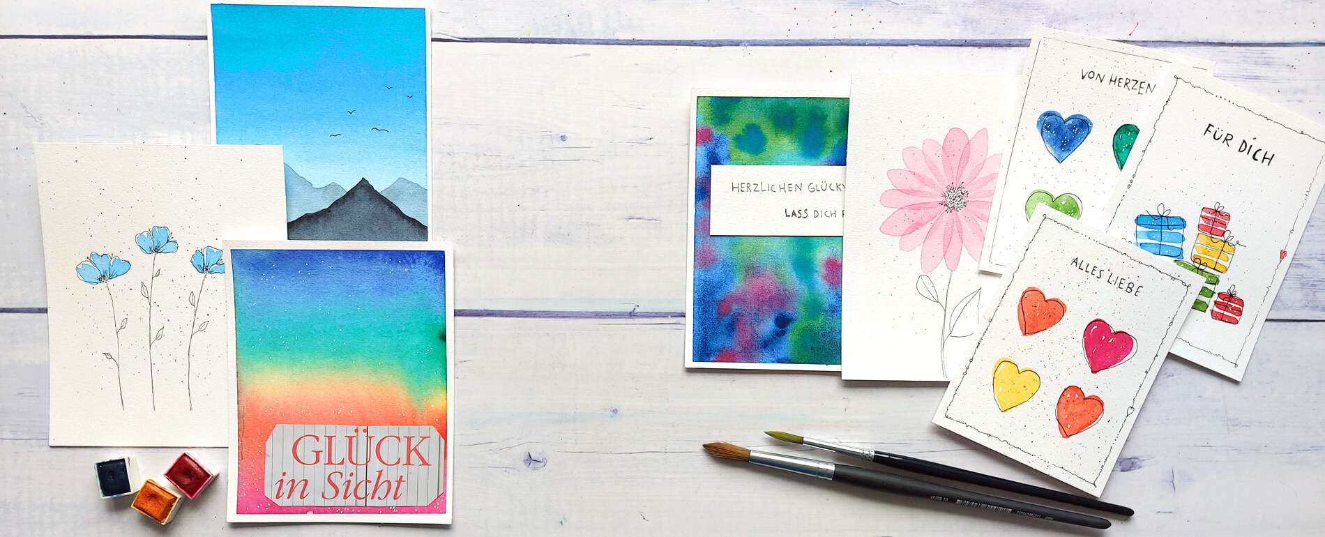 Seit einigen Jahren sorgen Pinsel und Farben für vergnügliche bunte Tupfer in meinem Alltag. Weil ich dir auch entspannte kreative Auszeiten wünsche, gibt es Enjoy-Aquarell und diesen kleinen Mal-Kurs.