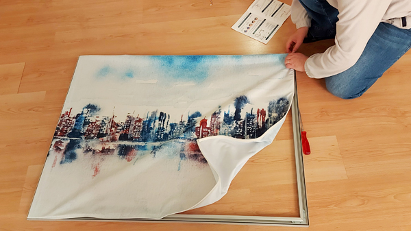 Du kaufst ein Motiv (Druck auf Textiltuch) mit dem Rahmen-Set dazu. Das Motiv kannst du jederzeit tauschen gegen ein anderes (in gleicher Größe, versteht sich). So könntest du saisonal durchwechseln. Oder an deinen Geschmack anpassen, falls dir vielleicht nach „sehr bunt“ zumute ist und dann wieder nach „sanft und dezent“ oder nach einer Landschaft und dann wieder nach einem Porträt.