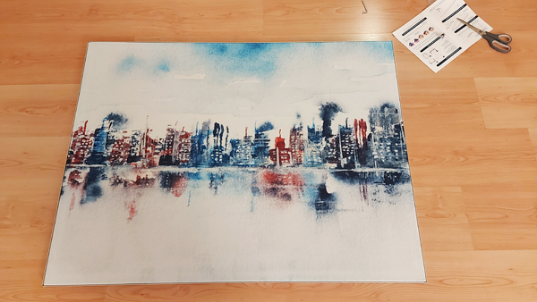 Ich habe zum Testen mal einen Art-Frame (mit meinem Motiv „Industrie-Skyline“, siehe oben) bestellt und zeig dir hier, wie das bei mir aussieht 🧐: